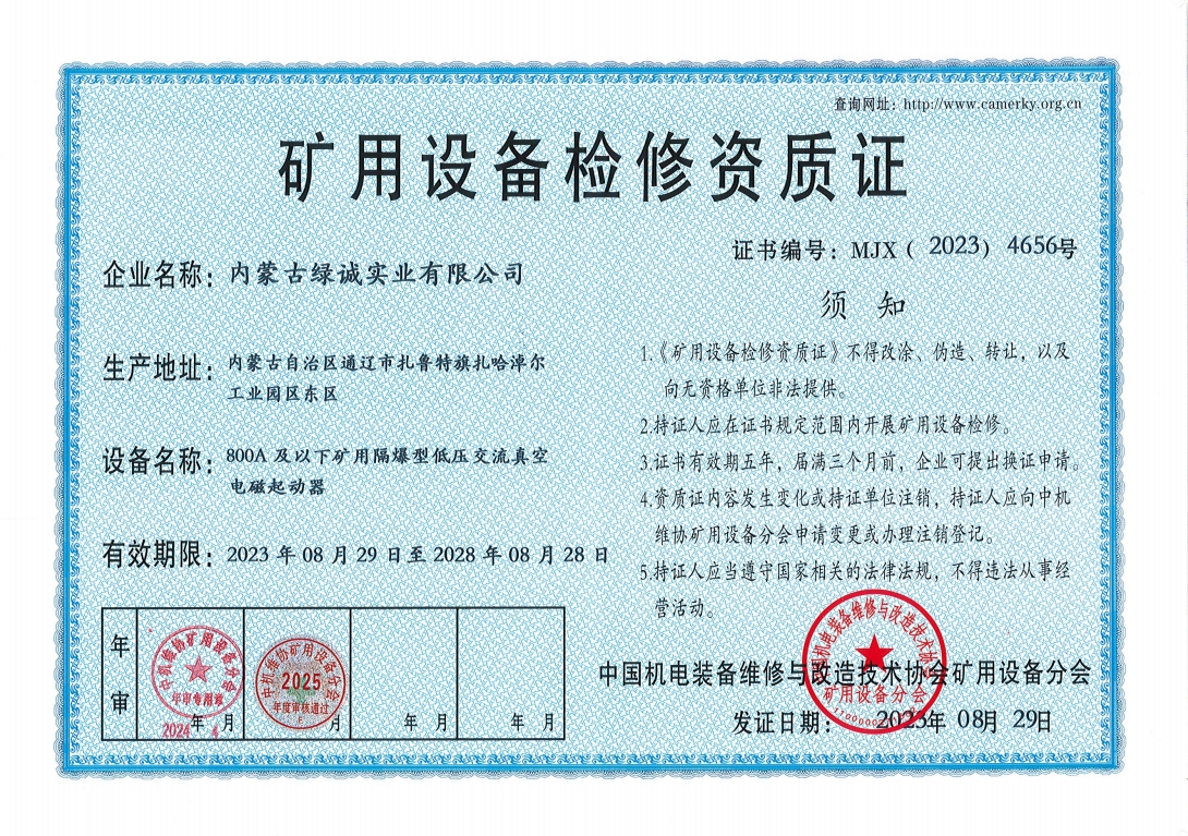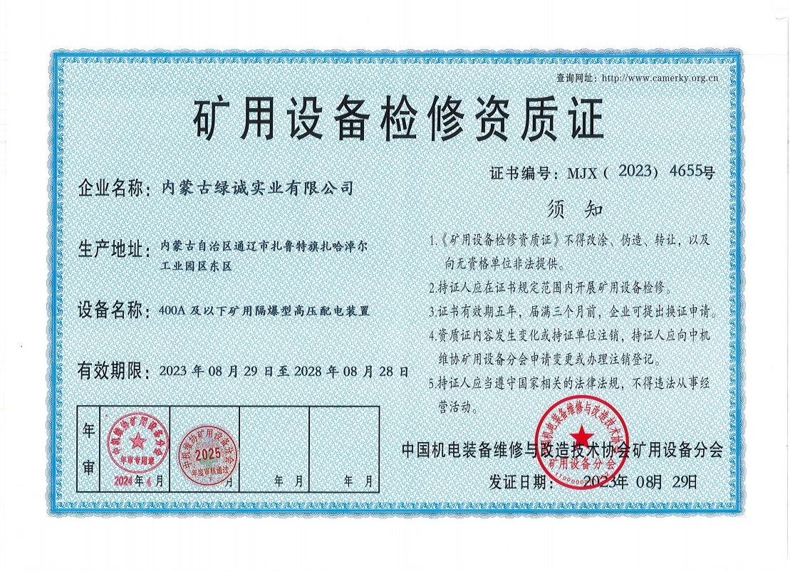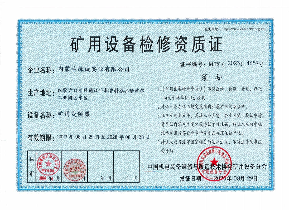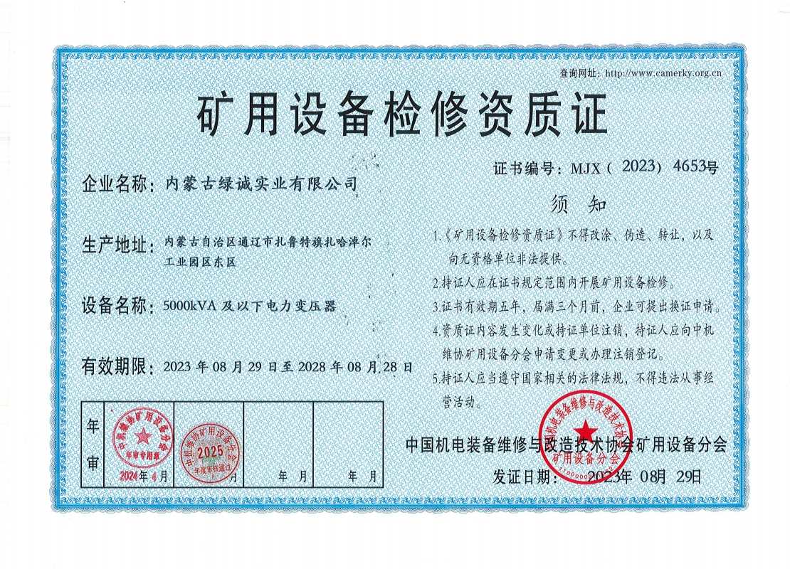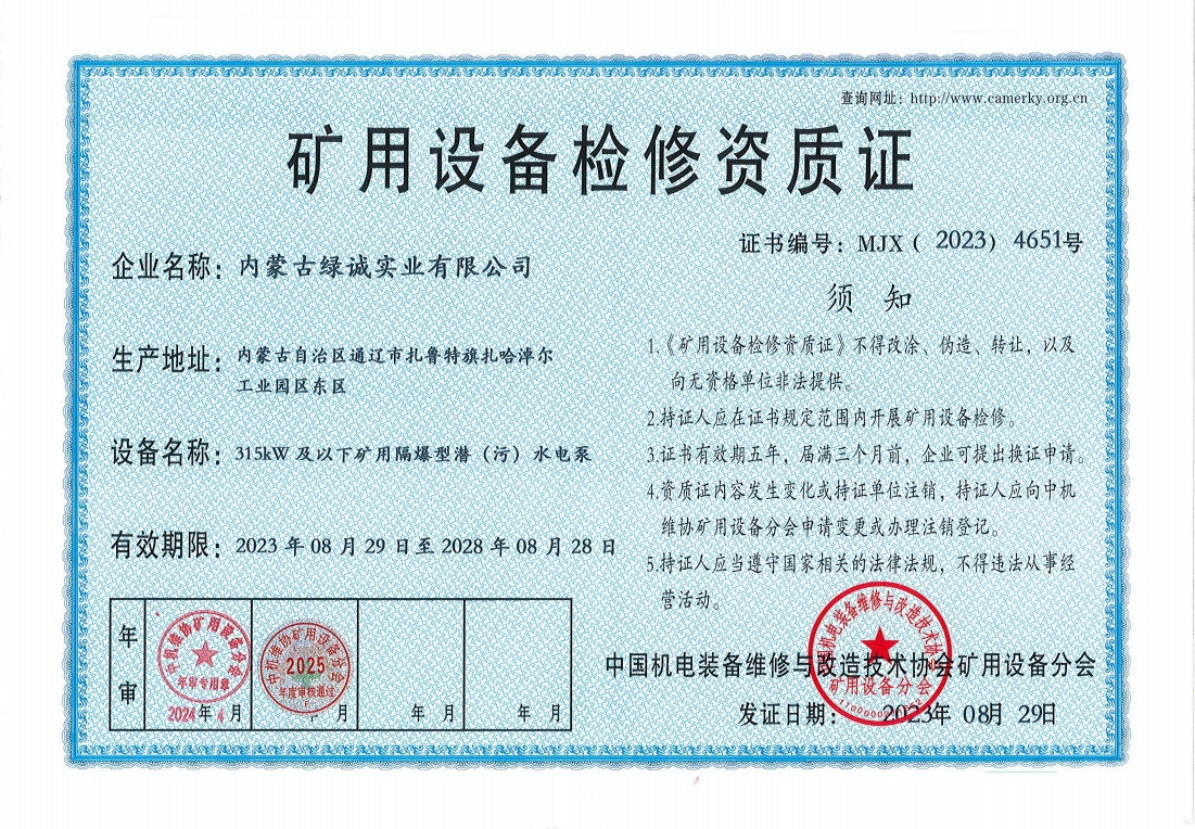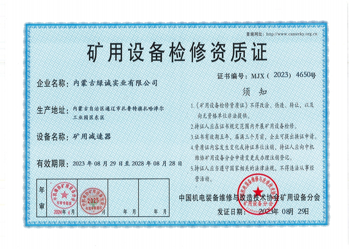 2018年我公司通過中國機電裝備維修與改造技術協(xié)會礦用設備分會審核并取得了9項礦用設備檢修資質(zhì)證書。公司本著“誠信為本 質(zhì)量為先 全心全意為客戶 ”的服務理念,圓滿完成各個廠礦的機械維修及配套服務,期待與您共同合作。